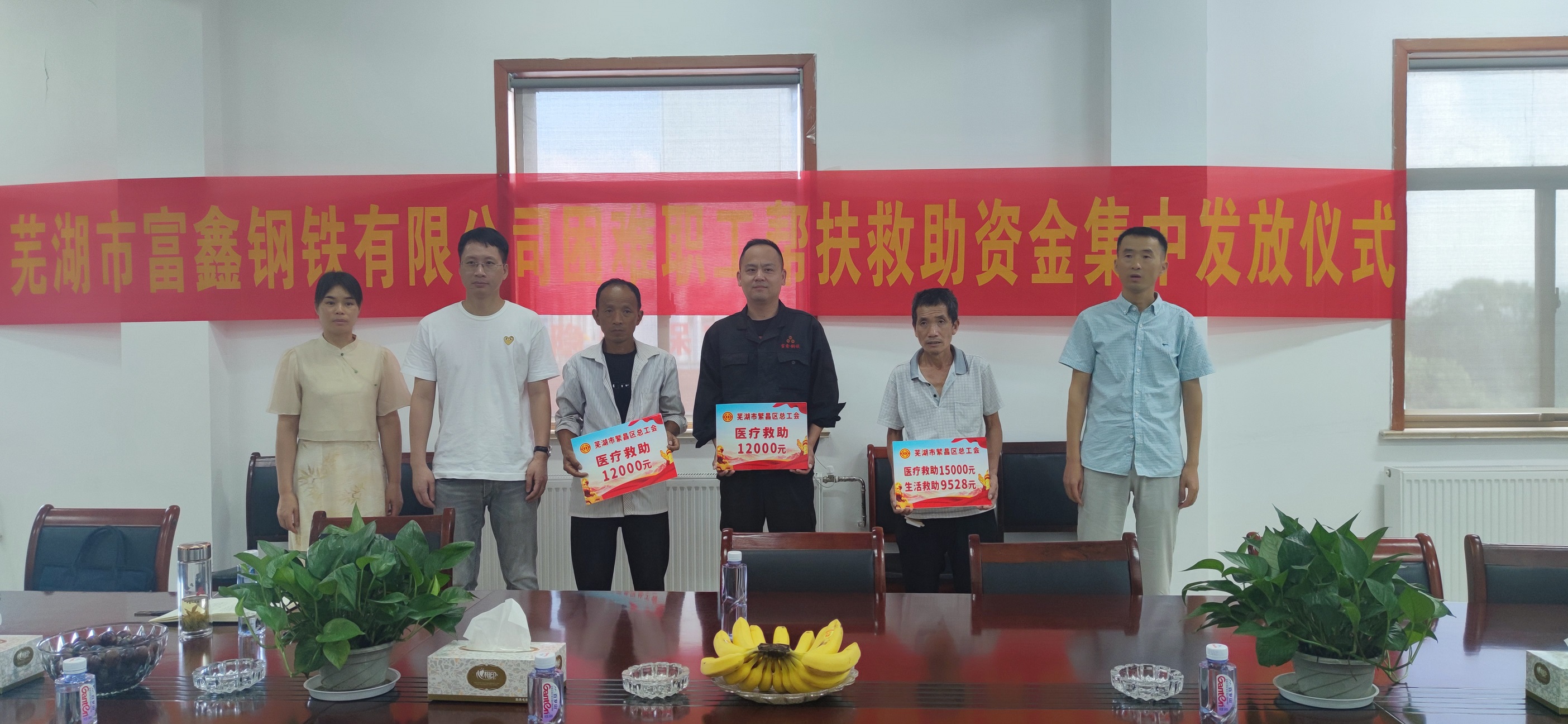 8月4日上午,繁昌區(qū)總工會一行在新港鎮(zhèn)總工會相關(guān)負(fù)責(zé)人的陪同下到蕪湖市富鑫鋼鐵有限公司舉行困難職工幫扶救助金發(fā)放...